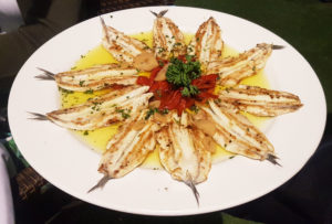 • Boquerones a la plancha, con aceite, ajo y pimiento rojo. Muy ricos, tocamos a 2 por persona. Estaban deliciosos.