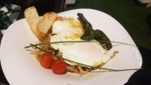 • Pescaditos fritos a la andaluza con huevos de corral. Venían acompañados de pimientos verdes, tomates cherry y pan. Estaban riquísimos, muy crujientes y sabrosos. Además, los huevos tenían puntillita por lo que me conquistaron 🍳❤.