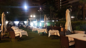 Lo que más me gustó, fue la espectacular terraza que tienen montada 😍. Con césped artificial, plantas, manteles blancos… Me pareció un buen sitio donde desconectar. Es un rincón que te evade del bullicio de la ciudad, ya que es bastante tranquilo y sin ruidos, ubicado en medio de altos edificios residenciales y de oficinas, perfecto para disfrutar tranquilamente de una buena comida/cena 👌🌇.